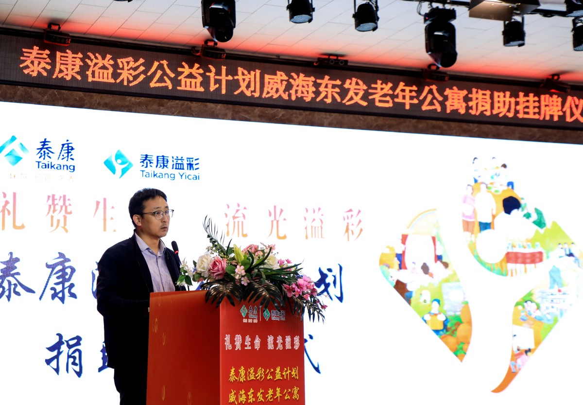 威海保險(xiǎn)行業(yè)協(xié)會(huì)副秘書(shū)長(zhǎng)白如和對(duì)泰康溢彩項(xiàng)目落地威海表示祝賀,對(duì)泰康支持地方養(yǎng)老業(yè)發(fā)展給予充分肯定。并表示,“老吾老以及人之老”,尊老敬老是中華民族的傳統(tǒng)美德。泰康的愛(ài)心捐贈(zèng)是對(duì)社會(huì)老齡化問(wèn)題的一次積極回應(yīng),也是對(duì)老年人生活品質(zhì)提升的承諾,泰康為金融保險(xiǎn)業(yè)做出了公益典范。希望更多企業(yè)和機(jī)構(gòu)積極踐行企業(yè)社會(huì)責(zé)任,關(guān)注關(guān)愛(ài)老年人,推動(dòng)公益事業(yè)發(fā)展。