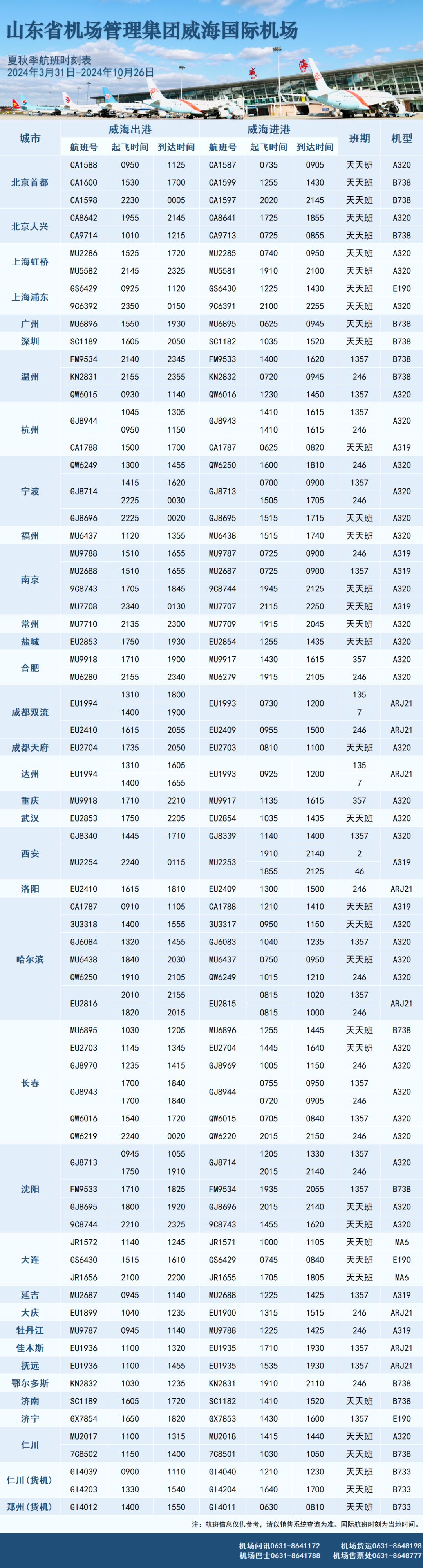 為迎接暑運(yùn)旺季的到來(lái),威海機(jī)場(chǎng)加密國(guó)內(nèi)熱門(mén)旅游城市航線航班,完善航線網(wǎng)絡(luò)布局,暑期開(kāi)通常州航班,加密北京、溫州、西安、哈爾濱、長(zhǎng)春等熱點(diǎn)城市航班,至北京、上海、哈爾濱、沈陽(yáng)和長(zhǎng)春的航班分別達(dá)到每周35班、21班、35班、25班和31班,韓國(guó)首爾每周14班,運(yùn)營(yíng)航線達(dá)到36條,更好地滿足旅客暑期航空出行需求。