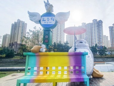 泉樂坊公園坐落于五渚河溫泉段,泉樂坊商業(yè)街南側(cè),面積約2.7萬平方米。公園的設(shè)計上,巧妙采用“一帶、九景、多節(jié)點”的功能結(jié)構(gòu)布局。其中,“一帶”指五渚河濱水岸帶,它宛如一條靈動的絲帶,將公園的精華景觀串聯(lián)成珠;“九景”則涵蓋龍貓車站、天空之境、開往春天的列車等諸多景觀,這些景觀造型復(fù)古且充滿文藝氣息,極為適合游客拍照打卡。