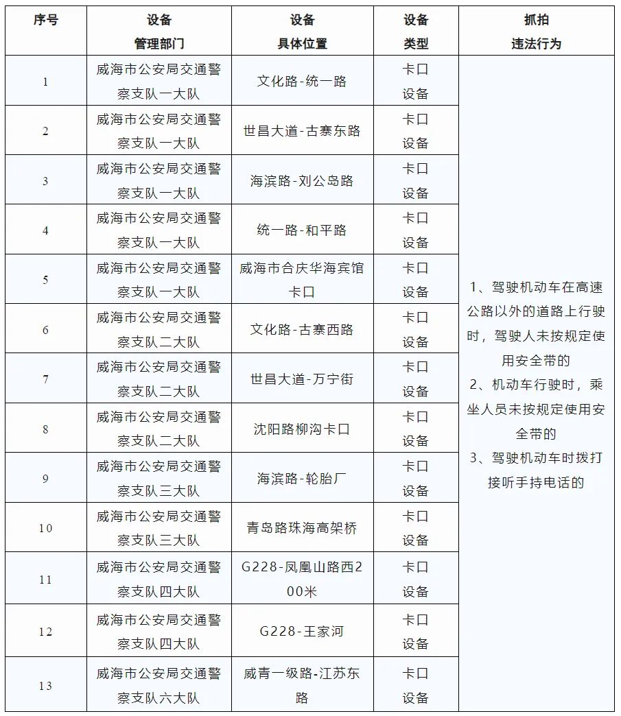 為保障道路交通安全,預防和減少交通事故的發(fā)生,根據(jù)《中華人民共和國道路交通安全法》及其實施條例等法律法規(guī)和相關技術規(guī)范的規(guī)定,依據(jù)《公安機關執(zhí)法公開規(guī)定》,現(xiàn)將新增的13處交通技術監(jiān)控設備予以公示,自2024年9月1日起,將對有關交通違法行為進行依法管理,請廣大道路交通參與者自覺遵守相關法律法規(guī),共同維護良好的道路交通秩序。