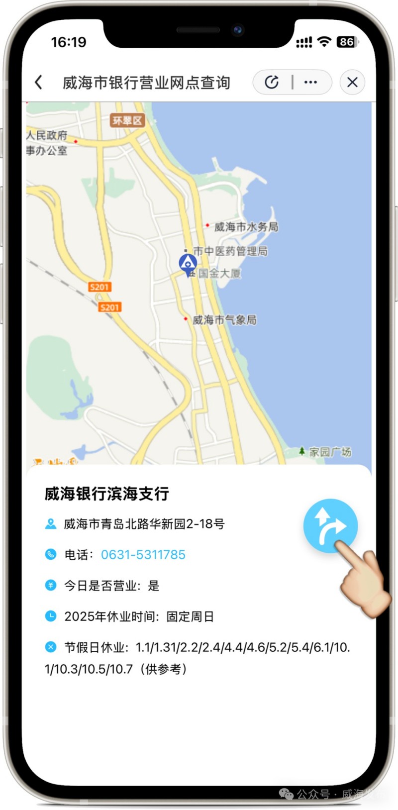 平時上班不方便,周末休假想去銀行辦理業(yè)務(wù)又不知道銀行是否休假?以后再也不用發(fā)愁了!近日,威海市大數(shù)據(jù)局聯(lián)合國家金融監(jiān)督管理總局威海監(jiān)管分局,在“愛山東”APP(威海分廳)上線了“威海市銀行營業(yè)網(wǎng)點(diǎn)查詢”應(yīng)用,基于地圖為市民直觀便捷提供全市銀行網(wǎng)點(diǎn)營業(yè)休息信息的查詢服務(wù),再也不用擔(dān)心白跑一趟了!