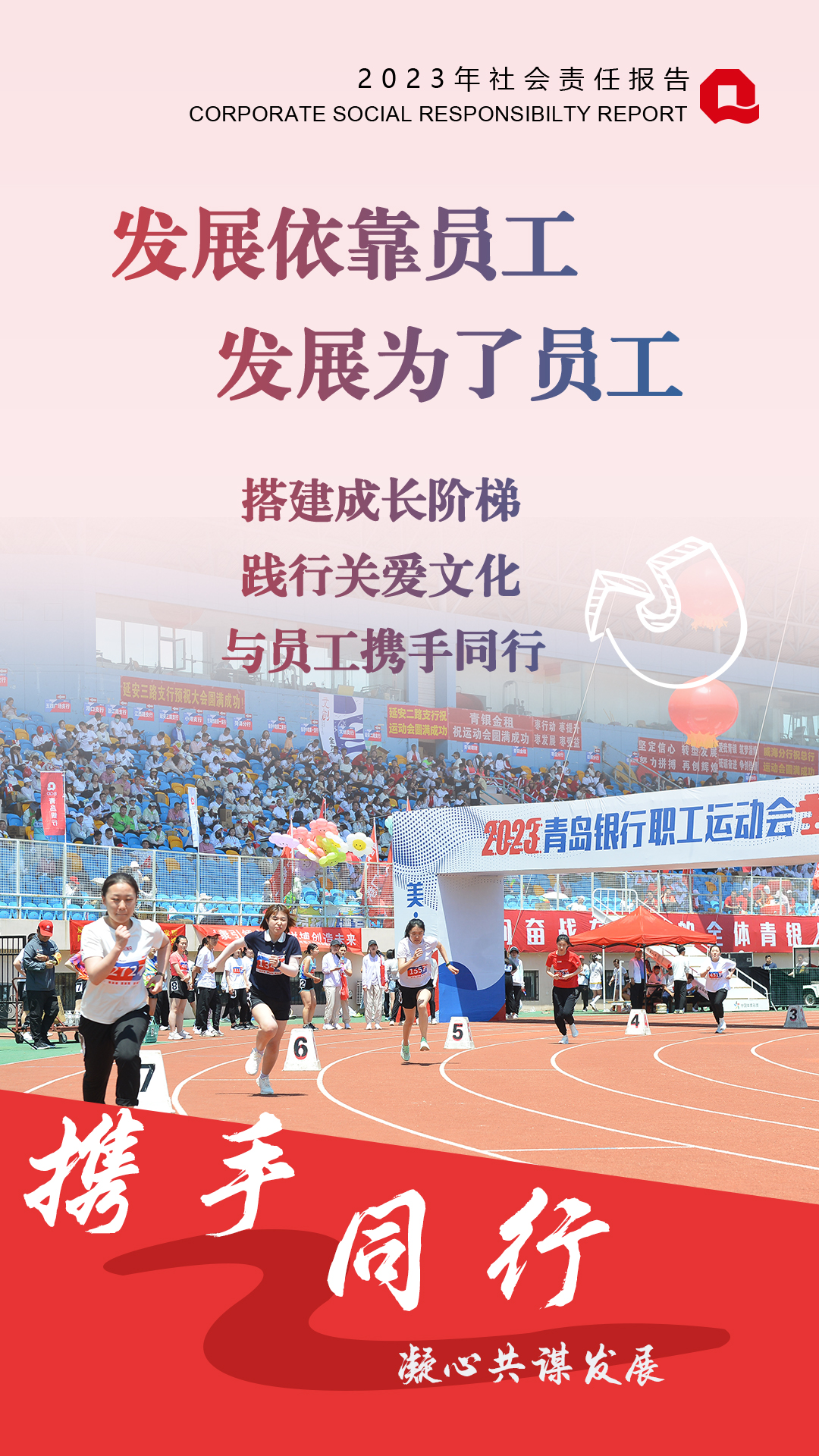 2023年,青島銀行堅持“高質(zhì)量履責(zé)”與“高質(zhì)量發(fā)展”同行,對內(nèi)堅持“發(fā)展依靠員工,發(fā)展為了員工”理念,為員工搭建成長平臺,踐行關(guān)愛文化,與員工攜手同行共成長;對外積極投身社會公益,向善而行,著力構(gòu)建具有青銀特色的慈善公益體系。