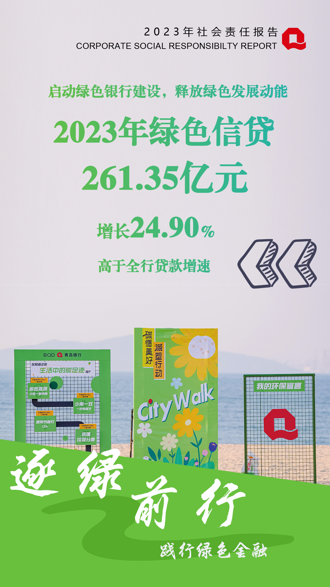 堅持生態(tài)優(yōu)先、綠色發(fā)展理念,2023年,青島銀行加大綠色金融產(chǎn)品創(chuàng)新,著力深耕降本增效賽道,努力擦亮“綠色銀行”名片,釋放綠色發(fā)展動能,賦能本行高質(zhì)量發(fā)展。
