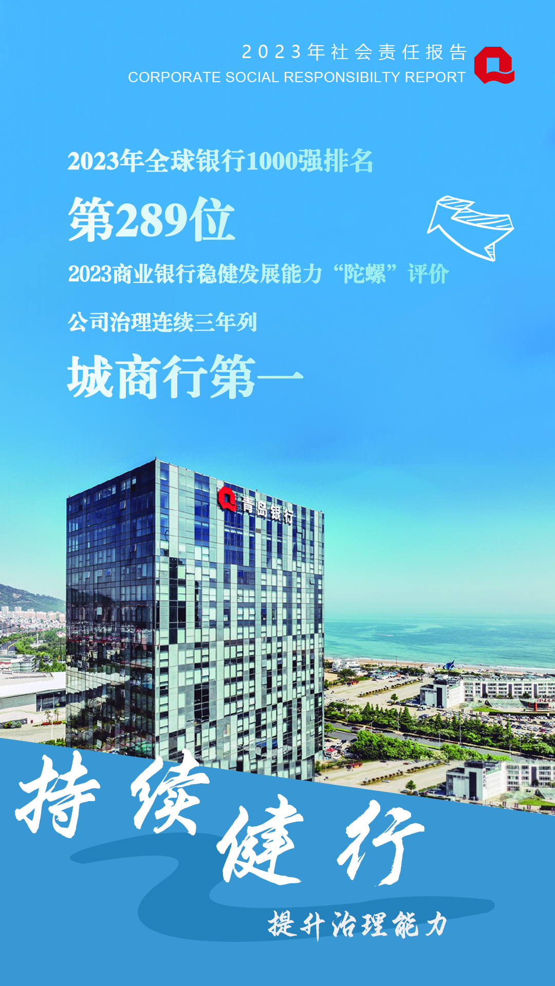 2024年3月28日,青島銀行發(fā)布2023年度社會責(zé)任報告,這是青島銀行連續(xù)第8年發(fā)布獨立的社會責(zé)任報告。2023年,青島銀行堅持黨建引領(lǐng)航向,主動將自身發(fā)展融入地方發(fā)展大局,走高質(zhì)量發(fā)展之路,年內(nèi)管理總資產(chǎn)突破8000億元,站上發(fā)展新起點。穩(wěn)健發(fā)展的同時,青島銀行積極履行地方法人銀行的經(jīng)濟(jì)責(zé)任、環(huán)境責(zé)任和社會責(zé)任,以金融助力區(qū)域經(jīng)濟(jì)高質(zhì)量發(fā)展。
